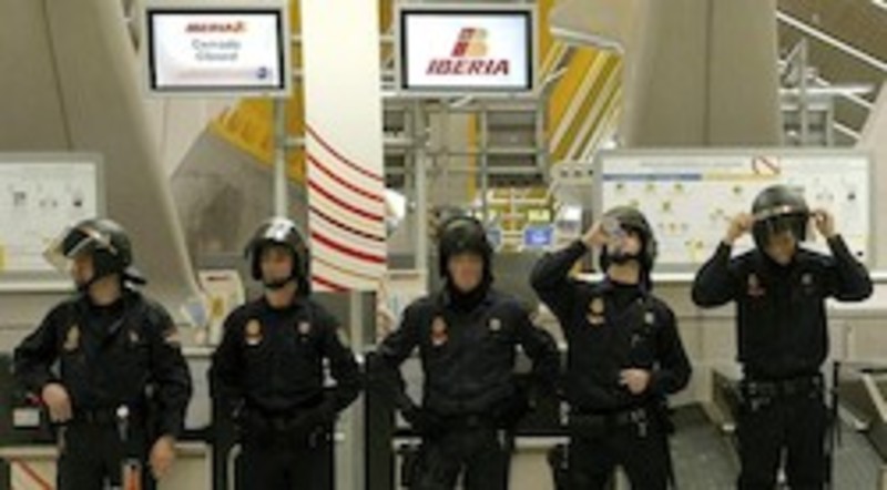 A los empleados de Iberia tan sólo les permite el acceso a la zona "no pública" con la carta de servicios mínimos, mientras que la policía también solicita a los pasajeros la tarjeta de embarque para acceder a algunas zonas de la terminal.