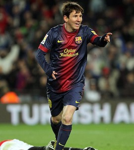 Tello otra vez, después de una jugada muy elaborada del Barcelona, envió al centro del área donde Messi recibió sin marca y logró el segundo de su equipo (2-1).