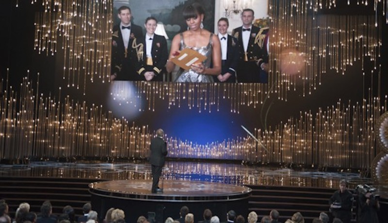 85 edición de los Premios Oscar celebrada en el Dolby Theatre cuando Charlize Theron y Channing Tatum han bailado agarrados en un número notable amenizado por la buena voz del presentador, Seth MacFarlane. Ha sido el comienzo de unos cuantas actuaciones musicales que se tornaron al final algo repetitivas. Como curiosidad cabe destacar que la primera dama estadounidense, Michelle Obama, introdujo desde la Casa Blanca la presentación de las nominadas a mejor película del año, que también anunció.