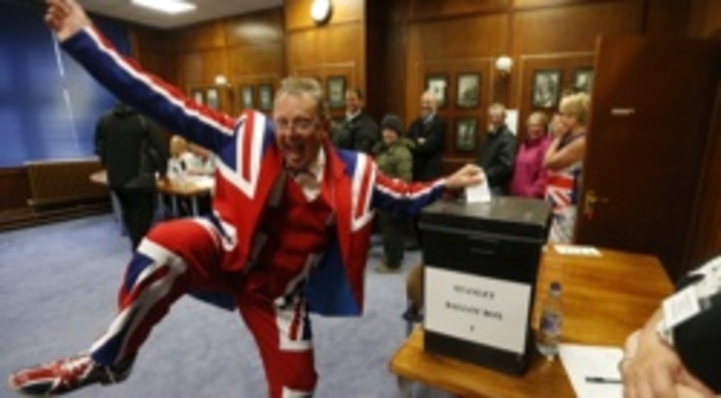 Union Jack (bandera británica) marcó la primera de las dos jornadas reservadas para esta votación, en la que muchos isleños acudieron a los centros electorales con los colores de la enseña del Reino Unido en forma de paraguas, vestidos, faldas, trajes, camisetas y hasta vistieron a sus perros con la insignia.