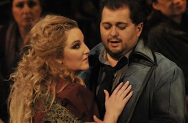 Teatro de la Zarzuela, el italiano Paolo Pinamonti, en la presentación de la obra a los medios de comunicación estaban, precisamente, la mayoría de los integrantes del extenso elenco de cantantes que intervienen repartidos – aunque no siempre de la misma forma – en tres distintos repartos, de los que no cabe hablar de primero, segundo o tercero, ya que, según ha declarado Oliver Díaz, responsable junto a Cristóbal Soler de la dirección musical, todos son de una altísima calidad y aportan a la obra sus características especiales. Mariola Cantarero, Sonia de Munck y Carmen Romeu serán las encargadas de dar vida al personaje de Marina, un papel que la soprano granadina Mariola Cantarero ha definido como muy difícil vocal y escénicamente. “Marina son tres Lucia y una Gilda”, ha asegurado, añadiendo que a ello se une la “responsabilidad de cantar en nuestro idioma y que se nos entienda”.
