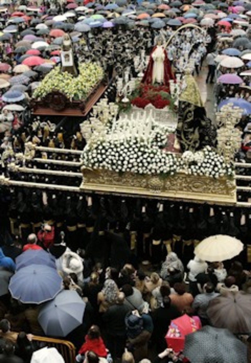Un año más, la ya "clásica" lluvia de Semana Santa se ha cebado con numerosas cofradías y hermandades que en las últimas horas se han visto obligadas a suspender sus salidas o a guarecerse y acortar los recorridos de sus imágenes en las principales procesiones.