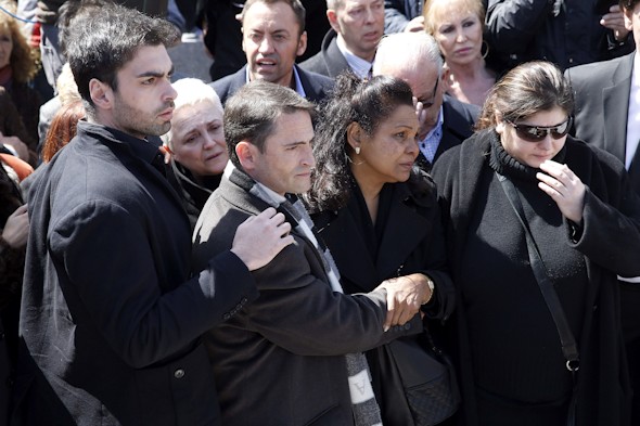 Un ataúd color caoba rematado con un Cristo y una docena de claveles rojos acercaban a la cotidianeidad su adiós, que fue oficiado por un sacerdote negro que la recordó primero como María Antonia Abad para luego añadir que era "más conocida como Sara Montiel". "Llegó por el mar un día y se marchó por el mar/. Se llevó como recuerdo un beso, no pidió más" eran los versos de "La sirena", de Ramón Alarcón, que se recitaron antes de dejar definitivamente a la actriz y cantante junto a su hermana, Elpidia, y su madre, María Vicenta, sobre cuya lápida dormía ella con su visón para llorar su muerte. "No molestó mucho, dos suspiros y hala", decía Loles León, que junto a Boris Izaguirre o el productor Enrique Cerezo fueron algunos de los rostros conocidos en este acto fundamentalmente familiar, con sus hijos al frente, así como la gobernanta, quien descubrió ayer junto a Thais el cuerpo sin vida de Montiel.
