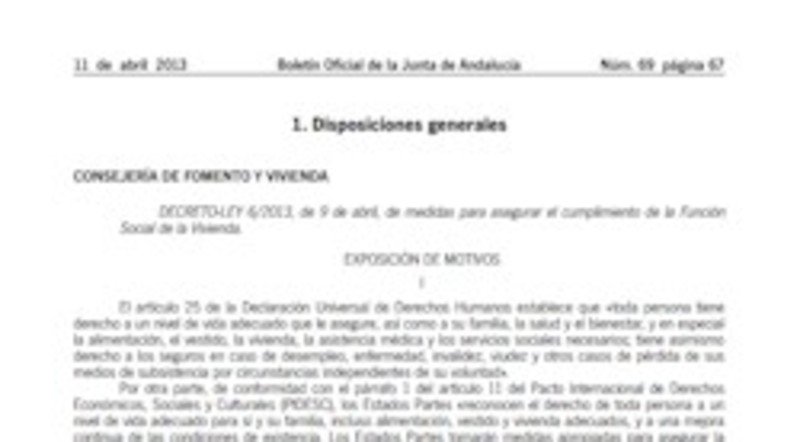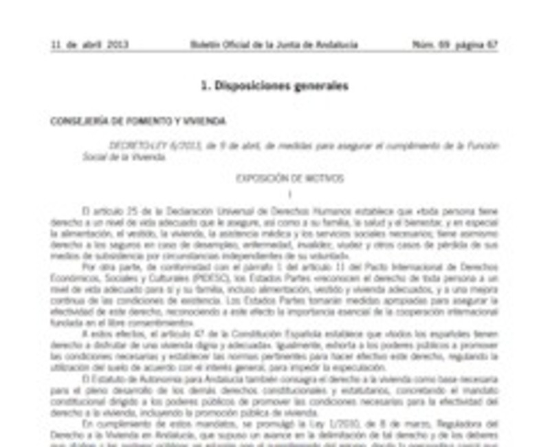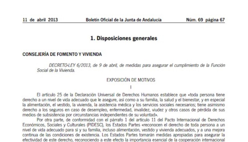 El Boletín andaluz publica el decreto que permite expropiar viviendas