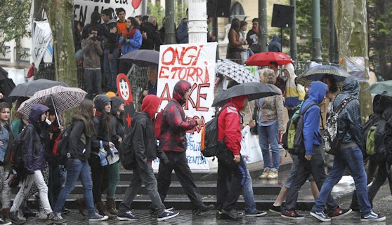 Tras alertar en tres ocasiones de que se iba a proceder a las detenciones de los condenados, los agentes han comenzado, pasadas las 06.30 horas, a llevarse uno a uno a los manifestantes, que permanecen sentados y han adoptado una actitud de resistencia pasiva al tiempo que corean gritos como "violencia la vuestra, asquerosos", "no os los llevareis", "el pueblo no perdonará" o "Iñigo Cabacas, te recordamos".