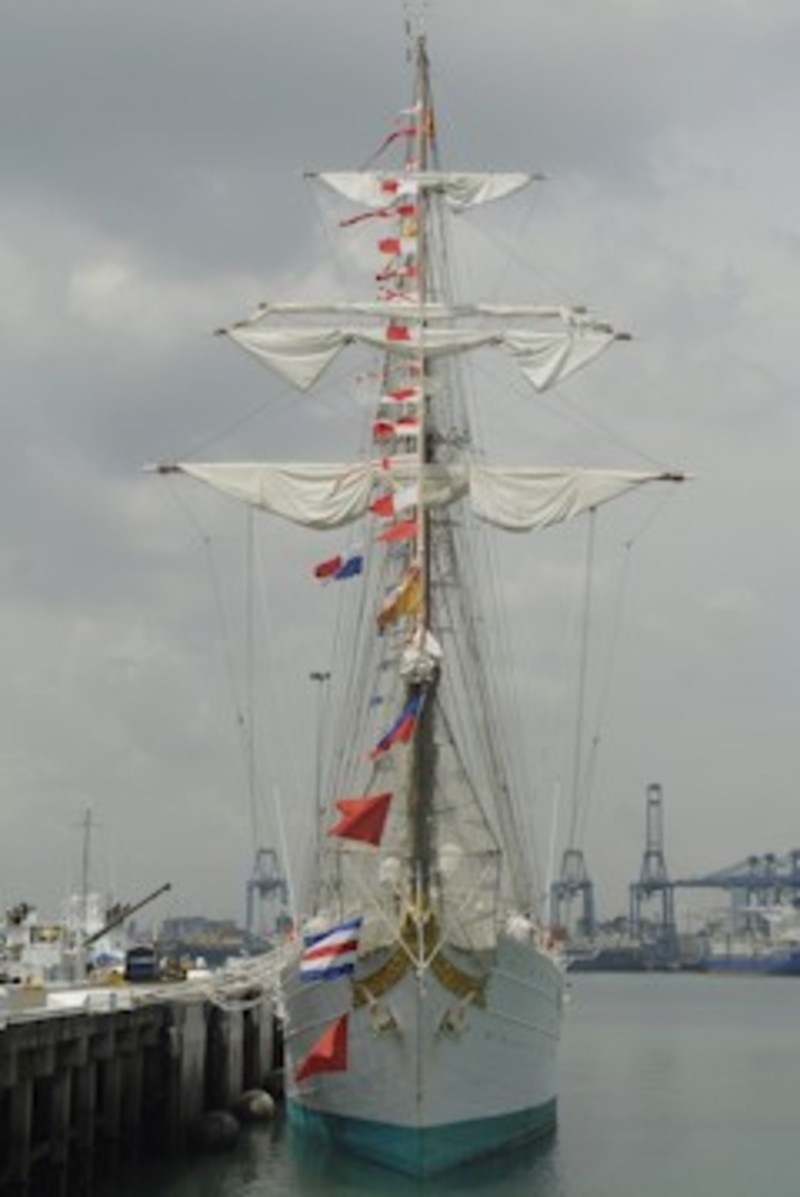 El buque escuela de la Armada Española Juan Sebastián Elcano, en el que se han instruido el Rey Juan Carlos y su hijo el Príncipe de Asturias, llegó a Panamá este jueves para sumarse a la celebración del V Centenario del descubrimiento del océano Pacífico por el explorador español Vasco Núñez de Balboa.