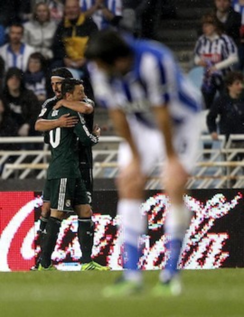 El Real Madrid se cargó las pilas en la segunda mitad y la Real volvió a mostrarse nerviosa, algo que Callejón, a pase de Kaká, aprovechó para marcar el segundo, justo cuando el Valencia lo hacía en su partido contra el Granada para descomponer todavía más a la Real.