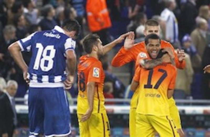El conjunto de Tito Vilanova, de nuevo sin su estrella Leo Messi, solventó un mal derbi con un magnífico gol del chileno Alexis Sánchez poco antes del cuarto de hora (m.14) y otro de Pedro Rodríguez (m.85) a la contra.