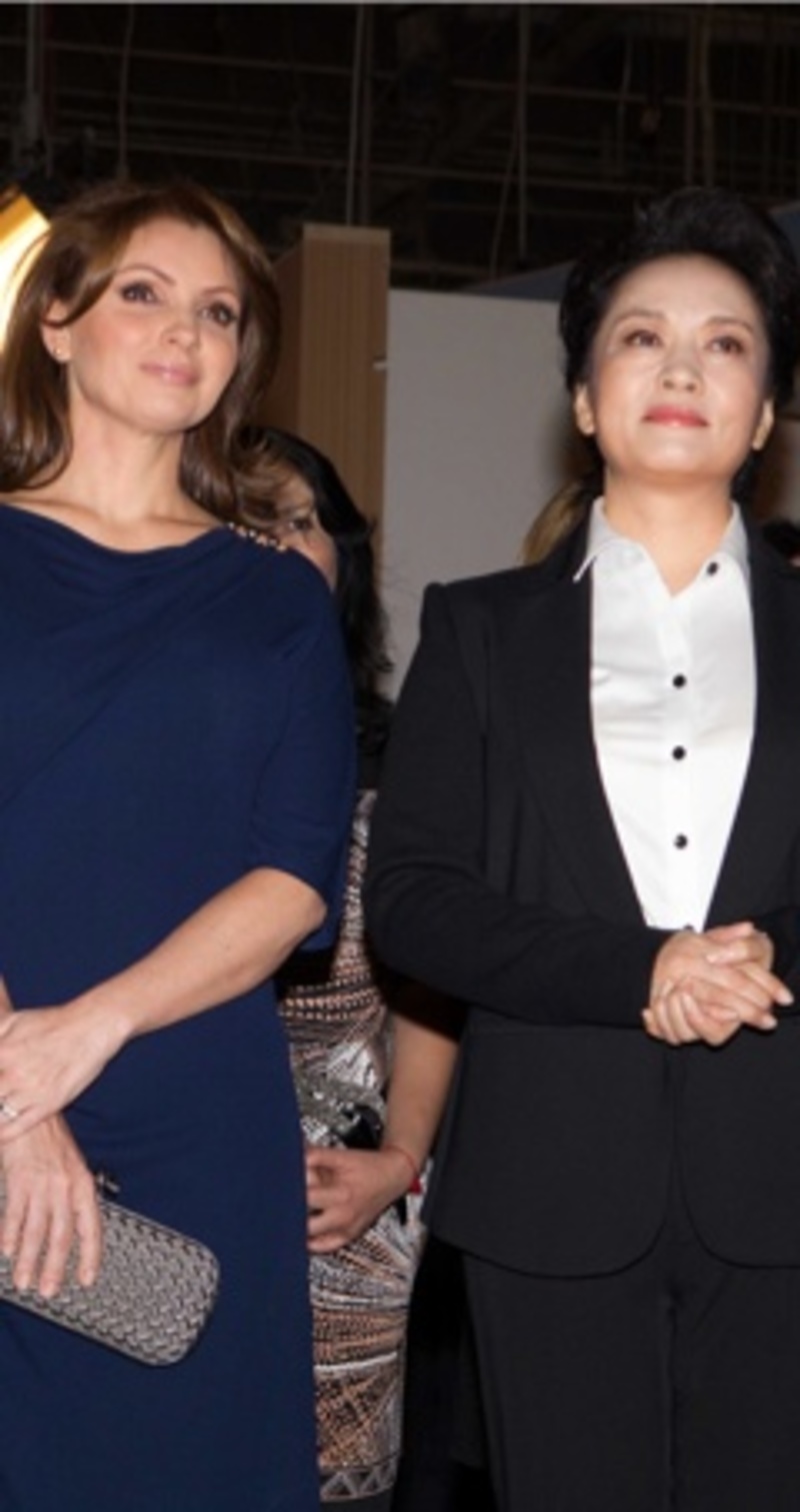 Peng Liyuan, la esposa del presidente de China, Xi Jinping, recorrió este miércoles las instalaciones del grupo Televisa, junto a la esposa del presidente mexicano Enrique Peña Nieto, la ex-actriz Angélica Rivera.