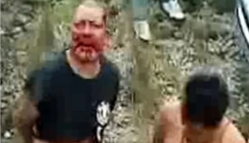 Un vídeo publicado en YouTube muestra a un grupo de personas rodeando a dos hombres que están tirados en el suelo y maniatados, uno de ellos ensangrentado. El siguiente fragmento muestra a uno de ellos atado a un árbol mientras arde vivo.