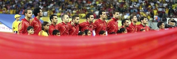La selección española debutó en la Copa Confederaciones con una brillante victoria ante Uruguay. Bajo el mando de Fábregas, Xavi e Iniesta, la actual campeona de Europa exhibió la mejor versión de su juego combinativo. Del Bosque apostó por Soldado y éste no defraudó. Un gol del valencianista y otro de Pedro sentenciaron el partido en un primer acto para el recuerdo. Luis Suárez apretó el marcador con un lanzamiento de falta sublime. Primeros tres puntos para el bloque nacional que ha demostrado merecer el cartel de favorito.