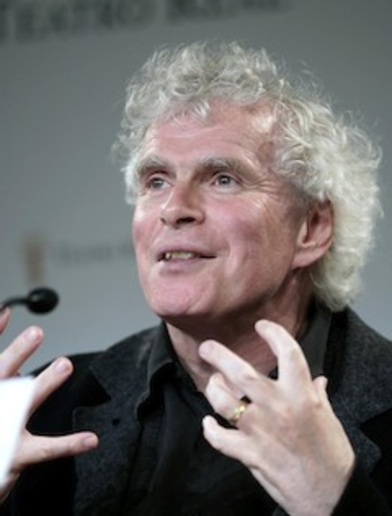 La de este martes en el Teatro Real ha sido la única rueda de prensa que el director de la Orquesta Filarmónica de Berlín, sir Simon Rattle, ha ofrecido antes de iniciar la gira que le llevará, además del coliseo madrileño, al Auditorio Nacional y al Palau de la Música Catalana.