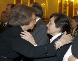 El afecto de la Familia Real hacia la familia del ex presidente fallecido se hizo visible esta mañana cuando los Reyes y los Príncipes de Asturias se presentaron poco antes de las 11:00 horas en la capilla ardiente. La Reina, de riguroso luto, dió un afectuoso abrazo a Pilar Ibáñez-Martín, la viuda de Calvo Sotelo.