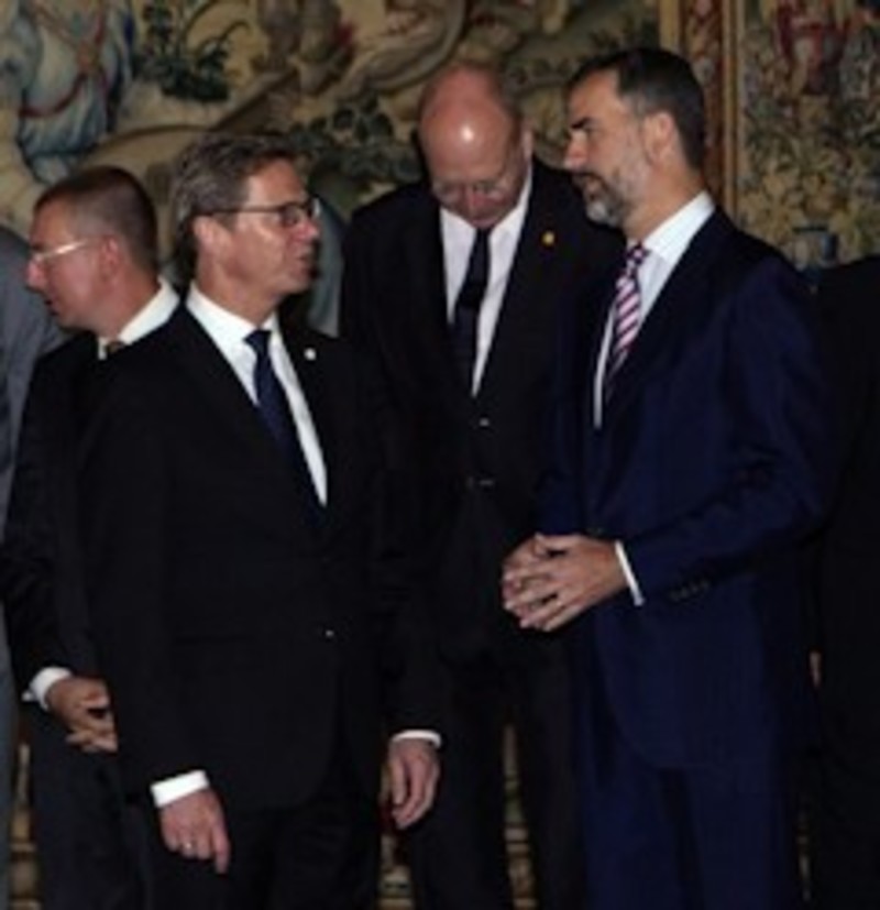 El Príncipe ha saludado a cada uno de los ministros, con el titular de Exteriores español a la cabeza, José Manuel García Margallo, y con el jefe de la diplomacia alemana, Guido Westerwelle, coorganizador de esta cumbre.