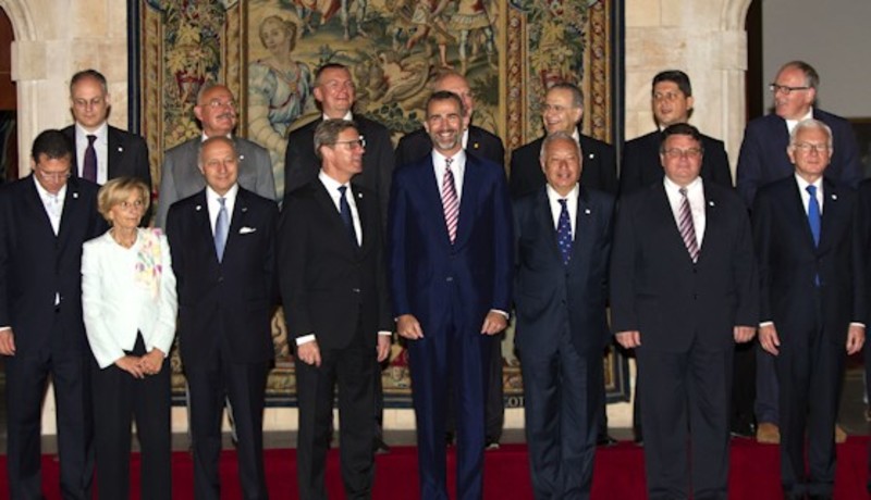 Don Felipe ha recibido a los jefes de la diplomacia de los países europeos en el Palacio de la Almudaina de Palma de Mallorca, ciudad en la que, desde ayer, los ministros han estado intercambiando puntos de vista sobre las reformas que necesita la Unión Europea para dejar atrás la crisis y para que sus instituciones ganen en legitimidad ante los ciudadanos.