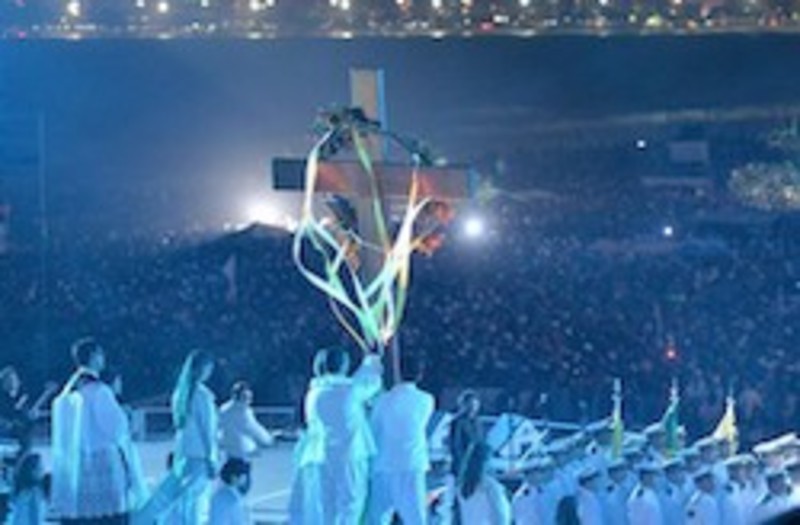 Ante cientos de miles de jóvenes, Francisco también ha indicado que Jesús con su Cruz se une "al silencio de las víctimas de la violencia, que no pueden ya gritar, sobre todo los inocentes y los indefensos"; a "las familias que se encuentran en dificultad, que lloran la pérdida de sus hijos, o que sufren al verlos víctimas de paraísos artificiales como la droga"; a "todas las personas que sufren hambre en un mundo que cada día tira toneladas de alimentos"; y a quien "es perseguido por su religión, por sus ideas, o simplemente por el color de su piel". También ha recordado a los 242 jóvenes victimas del incendio en la ciudad de brasileña de Santamaría.