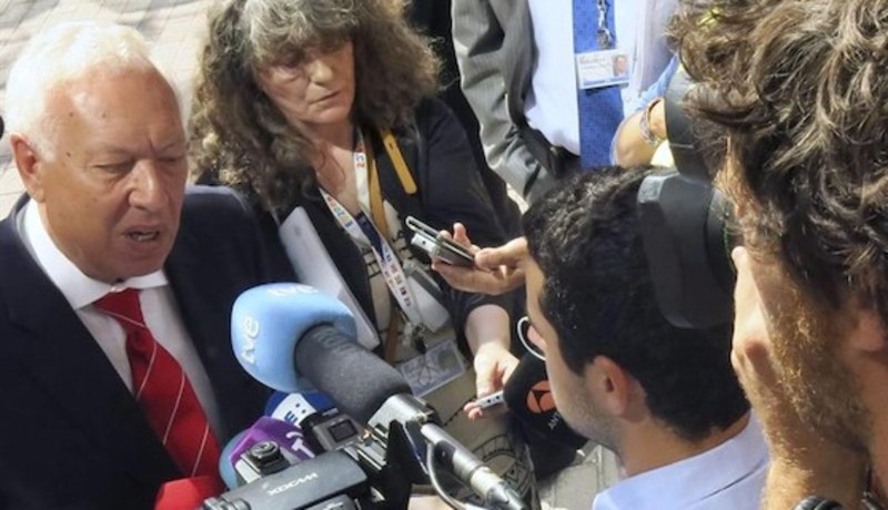 El ministro español, que llegó a la sede del Consejo de la UE poco después que Hague, reiteró en declaraciones a los periodistas la disposición de España a continuar el diálogo con el Reino Unido sobre la soberanía de Gibraltar, en cumplimiento con las resoluciones de las Naciones Unidas que así lo solicitan.