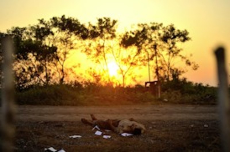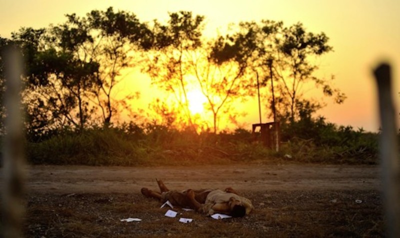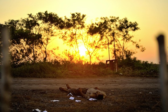 Así, la violencia en México convive en sus fotografías con escenarios solitarios en los que la muerte y la naturaleza se pugnan el protagonismo. Cadáveres solitarios o grupos de cuerpos inertes aguardan en soledad maniatados, casi desvestidos e, incluso, con heridas evidentes en sus maltrechos cuerpos.