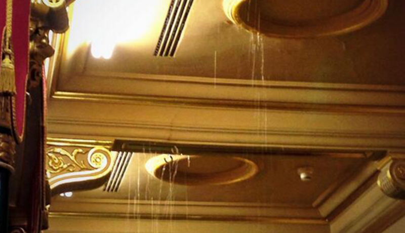 Desde entonces, el Palacio se ha visto rodeado de andamios y vallas, mientras decenas de operarios han trabajado en sus tejados, reparando las cubiertas y mejorando el aislamiento térmico del edificio, inaugurado por la reina Isabel II en 1850. Y todo para que en el primer pleno del nuevo curso, estalle una tormenta y empiece a caer agua a chorros sobre la tribuna de prensa.