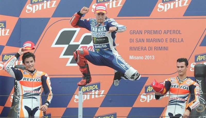 El español Jorge Lorenzo (Yamaha YZR M 1) sumó su segundo triunfo consecutivo y el quinto en lo que va de temporada al imponerse en el Gran Premio de San Marino de MotoGP que se disputó en el circuito "Marco Simoncelli" de Misano Adriático, con lo que recortó un poco más las diferencias con el líder del mundial.