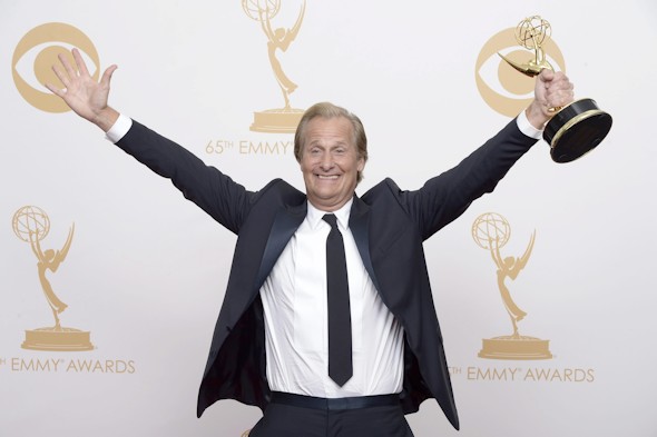 Jeff Daniels como mejor actor dramático por "The Newsroom" cuando todo hacía presagiar que Bryan Cranston iba a ganar su cuarto Emmy por "Breaking Bad". "En este tiempo la televisión está abarrotada (de talento), es un gran momento para estar en televisión", dijo Daniels a la prensa tras recoger su estatuilla. "Estoy feliz pero sorprendido", indicó el actor que celebraría su éxito de "fiesta hasta el amanecer" antes de subirse al avión para viajar a Atlanta y empezar a rodar la secuela de "Dumb and Dumber", lo que él calificó como una "caída libre intelectual" con respecto a su papel en "The Newsroom".