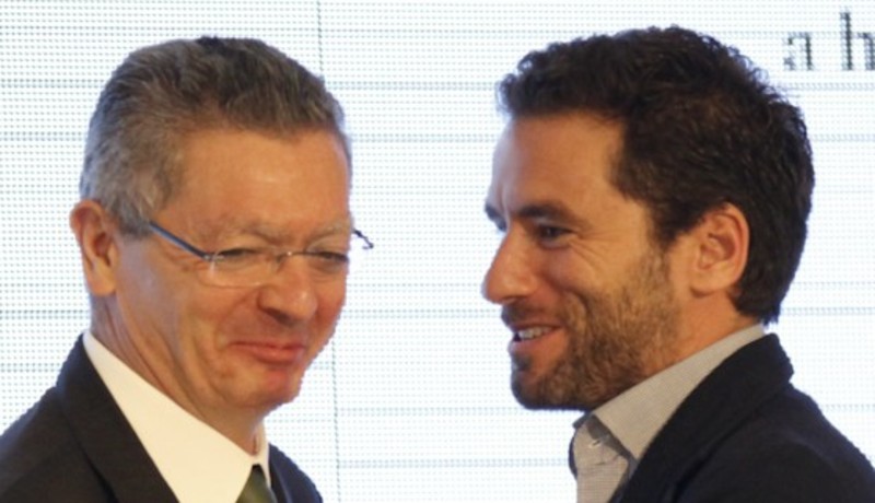 Alberto Ruiz-Gallardón, a su lado, por