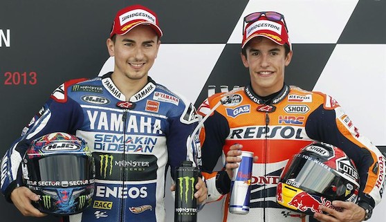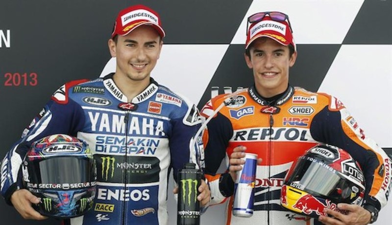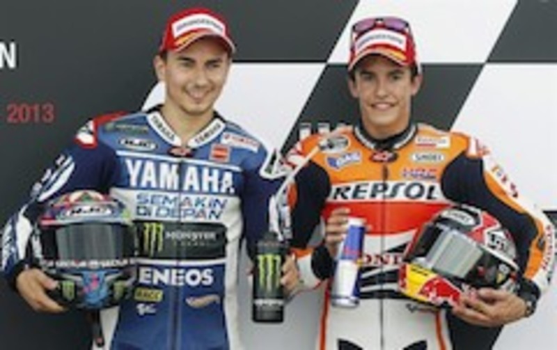 El campeón del mundo de MotoGP en 2010 y 2012 y el líder del mundial de 2013 tuvieron un bonito duelo mano a mano que acabó decantándose en favor del segundo, aunque por un margen auténticamente exiguo, que deja las puertas abiertas de par en par a una lucha encarnizada para la carrera aragonesa.