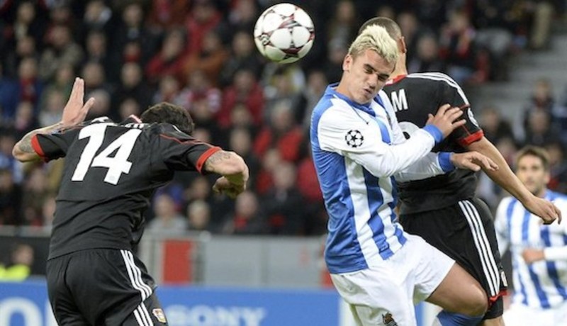 Sin embargo, a mediados del primero tiempo la Real Sociedad se sacudió un poco del dominio del Leverkusen. La primera señal de que parecía haber encontrado la llave del partido fue una falta lanzada por el francés Griezmann en el 24 que estuvo a punto de sorprender a Leno.