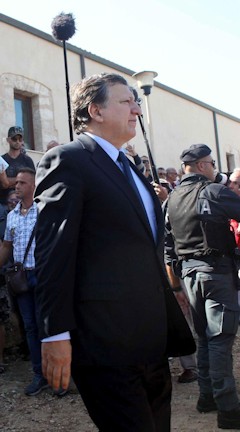 Tanto Barroso como el primer ministro italiano, Enrico Letta, fueron recibidos bajo el grito de "vergüenza" por la veintena de personas se manifestaban ante el aeropuerto de la isla siciliana para expresar su indignación ante la posición de la Unión Europea en materia de inmigración.