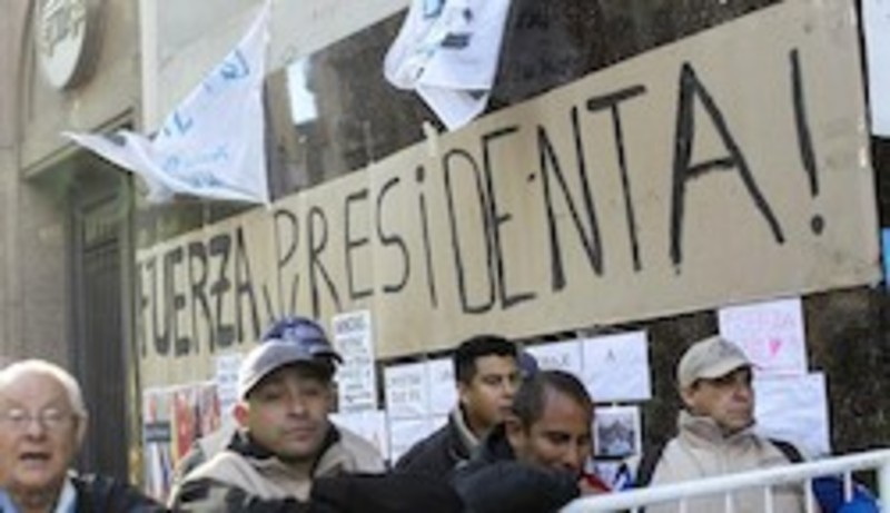 Unas decenas de personas continuaban hoy congregadas frente al hospital a la espera de novedades sobre la salud de la presidenta, guardando silencio para no perturbar a los pacientes de la institución.