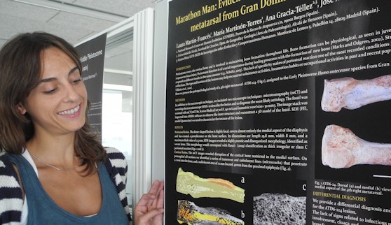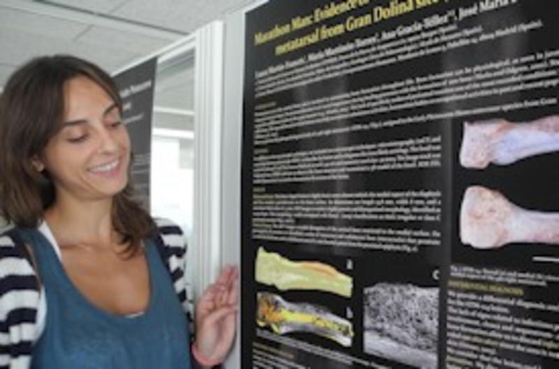 De los 154 candidatos que presentaron sus investigaciones sobre paleontología en la tercera edición de la reunión de la Sociedad Europea para el Estudio de la Evolución Humana (ESHE) -celebrada entre el 19 y el 21 de septiembre-, la española Laura Martín-Francés obtuvo el premio al mejor póster por su trabajo sobre una fractura de estrés en el cuarto metatarso de Homo antecessor, un tipo de lesión típica de corredores de maratón, a partir de la que la investigadora deduce que este individuo, que habitó la Sierra de Atapuerca en el Pleistoceno Inferior, "cubría largas distancias en un terreno pedregoso".