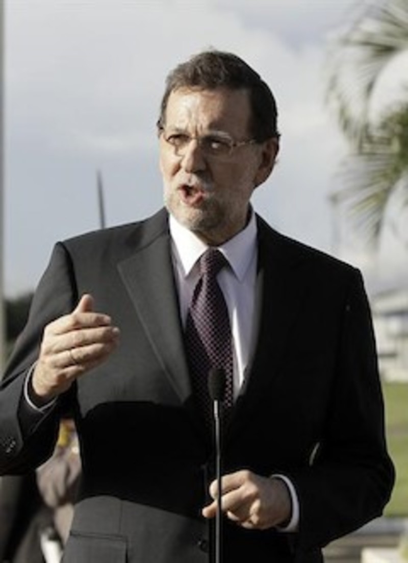 El jefe del Ejecutivo español se refirió brevemente al inicio de su intervención a la situación económica de España para difundir el mensaje que está trasladando últimamente en todos los foros internacionales en los que participa: que España está dejando atrás la recesión.