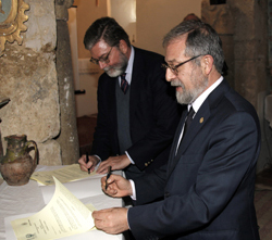 rector de la universidad de Valladolid se ha mostrado muy satisfecho de haber fraguado una “colaboración estable del estudio del patrimonio cultural y paisajístico” y se ha mostrado convencido de que abre la vía a desarrollar otras líneas complementarias “como la de la historia en general y la del derecho”. “Es una enorme satisfacción para mi haber tenido un papel mínimo en el afianzamiento y reforzamiento de estas relaciones por razones institucionales (porque para la Universidad es un honor reforzar el vínculo que tiene con nombre tan ilustres como Ortega o Marañón), y personales (porque para mi supone el cumplimiento de una ilusión personal). “