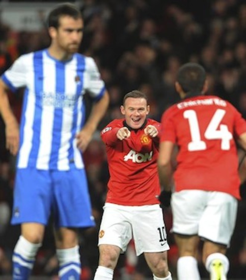 Por debajo en el marcador, Arrasate miraba con preocupación desde la banda cómo pasaban los minutos sin que los suyos encontraran fuerzas para oponerse a un United que atacaba con ferocidad por medio de Rooney, que tuvo opciones de marcar el 2-0 en ese primer tramo del encuentro.