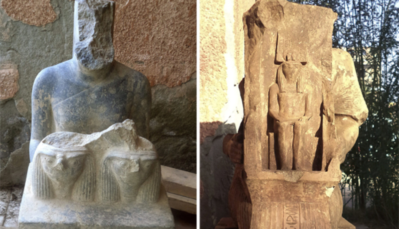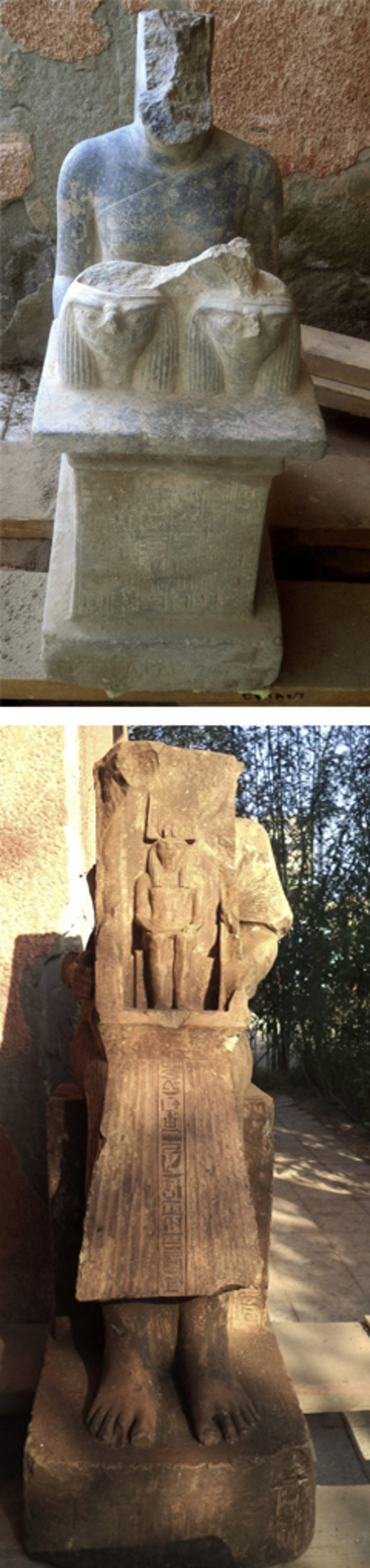 Una de las dos estatuas representa a un sacerdote de alto rango, mientras que la otra tiene grabado el nombre y la profesión de "imn-hob", uno de los escribas del templo, explicó el ministro egipcio de Antigüedades, Mohamed Ibrahim. La primera, esculpida en piedra diurita, mide 69 centímetros de alto y 48 de ancho, y muestra al sacerdote arrodillado y con vestimenta religiosa.