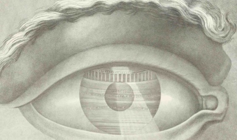Esa conexión entre artistas contemporáneos y pasados es una constante en la Historia del Arte, por lo que no extraña encontrar similitudes y vínculos entre las obras de unos y otros. Así, en un primer espacio dedicado al ojo, la muestra reúne trabajos de LedouxVistazo al interior del teatro de Besanzán-, Odilon Redon, Ernst La rueda de la luz- y de Herbert Bayer, entre otros, con los que plantea cómo este órgano ha despertado la atención de los artistas por tratarse de una ventana del alma, que permite ver el exterior, pero también el interior del ser humano.