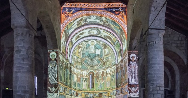 La iglesia románica de Sant Clemente de Tahull es uno de los iconos de la arquitectura y el arte románicos europeos y del patrimonio catalán. "El proyecto ha permitido conservar y restaurar las pinturas románicas originales del ábside, así como implantar un innovador proyecto de musealización del espacio mediante la proyección virtual de las pinturas originales", señala el comunicado.