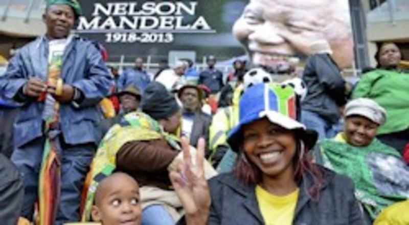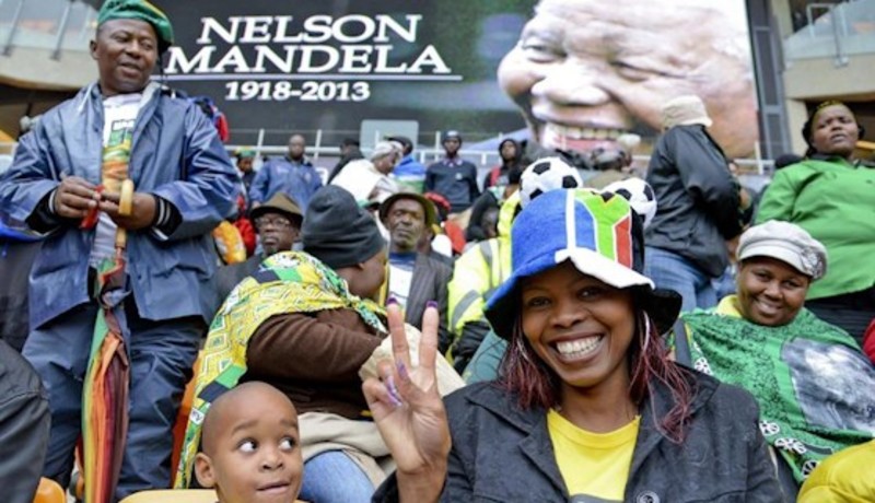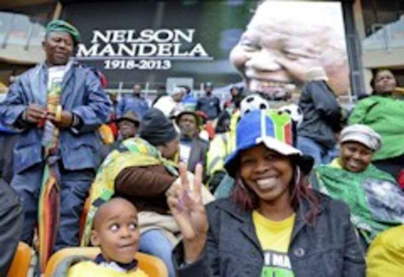 Decenas de miles de sudafricanos rindieron hoy tributo al expresidente Nelson Mandela en el estadio FNB de Soweto, a pesar de la intensa lluvia que caía sobre Johannesburgo.