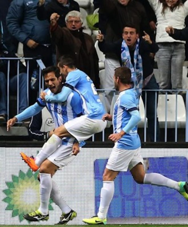 El técnico de Málaga, Bernd Schuster, movió el banquillo nuevamente buscando más pegada, más poder ofensivo y lo encontró con el delantero paraguayo Roque Santa Cruz, que aprovechó una falta de Duda y remató impecablemente de cabeza consiguiendo por toda la escuadra el primer gol del encuentro en el minuto 75.