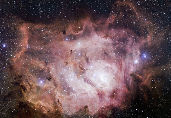 El Telescopio de Sondeo del VLT (VLT Survey Telescope) instalado en el Observatorio Paranal de ESO, en Chile, ha captado una nueva imagen de la Nebulosa de la Laguna rica en detalles. Esta nube gigante de gas y polvo alberga jóvenes cúmulos estelares y en su interior se están creando nuevas estrellas jóvenes intensamente brillantes.