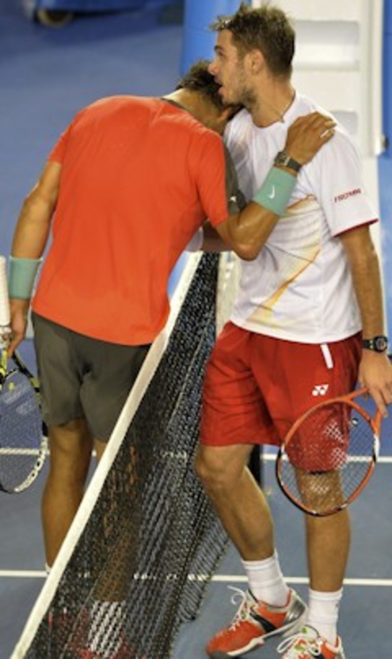 Wawrinka naufragó en la tercera manga, presionado por la obligación de rematar el partido cuando se encontraba en una situación de dominio y de inferioridad del número uno del mundo, al que demolió con sus saques directos, 19 en total. En la cuarta manga, Stan se recuperó, recompuso su juego y rompió dos veces el servicio de Nadal. Una vez controlado mejor sus nervios el suizo confirmó su victoria de forma más fácil.
