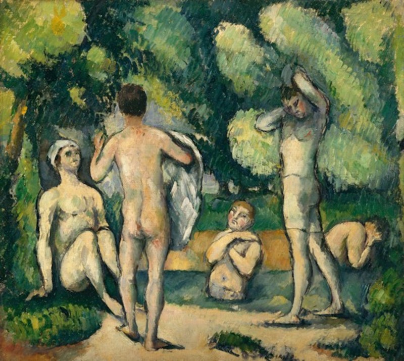 Asimismo, el lienzo Bañistas de Émile Bernard, padre del cloisonismo –colores planos y contornos oscuros silueteados-, situado en diálogo con otras obras de Cézanne dedicadas al estudio del desnudo o de la figura humana en comunión con el entorno, permite considerar al pintor no como un artista aislado, sino como un miembro más de una generación cuyo logro radica en la ruptura definitiva con el academicismo y la consolidación del arte moderno.