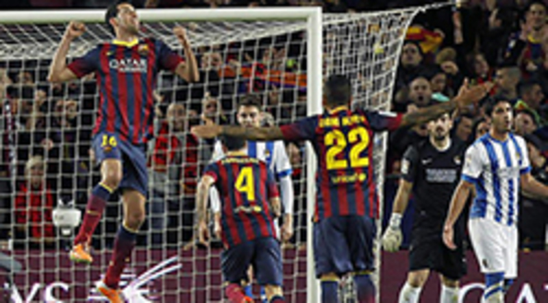 Griezmann tuvo la primera de la Real al principio del partido y Vela la última antes del descanso. Entre una y otra, el Barça, de menos a más y con más oportunidades que fútbol, pudo hacer media docena antes de que apareciera Busquets para marcar el 1-0.