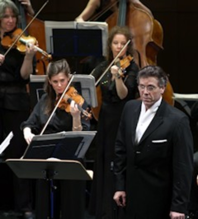 Amsterdam Sinfonietta, fundada en 1988 y dirigida por Candida Thompwson, el barítono estadounidense ha protagonizado, con indudable y merecido éxito, la cuarta Noche del Real, una de las más esperadas del ciclo correspondiente a la presente temporada del coliseo madrileño. Con un extenso bagaje que incluye más de 80 papeles de ópera, así como más de 160 grabaciones en las que predominan obras de su compositor favorito, Gustav Malher, el veterano y aclamado barítono ha venido a Madrid con un programa en el que, sin embargo, no figuran obras del autor bohemio. Destacando, por el contrario, obras de Johannes Brahms, un compositor muy poco frecuentado por el cantante de Indiana. Las ha interpretado después de un inicio instrumental, que dejaba bien patente la