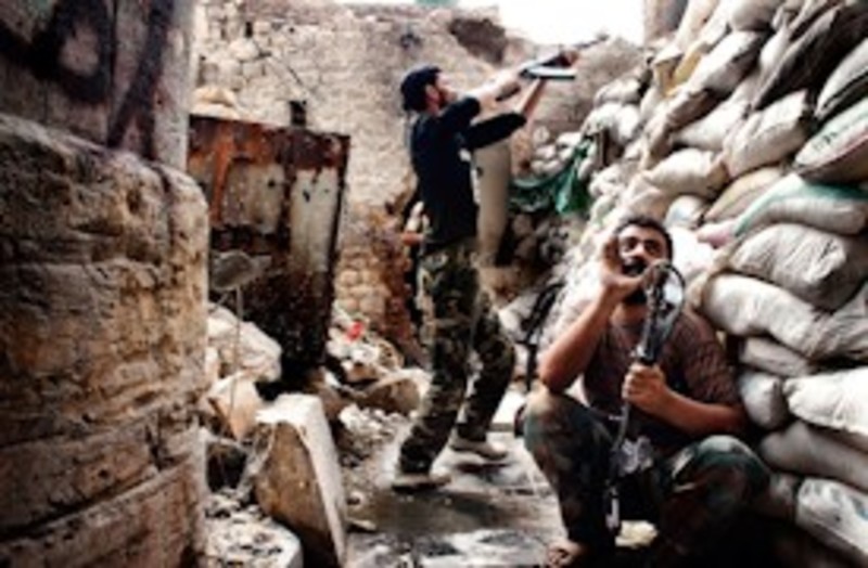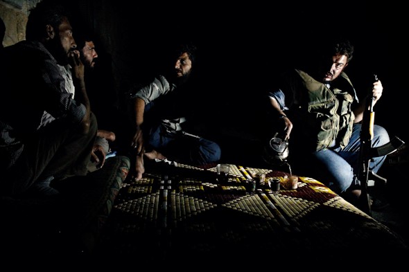 Un grupo de soldados de la Liwad Al-Tawhid hacen un descanso después de cenar. Los rebeldes toman té y hablan sobre su rutina en el frente de barrio de Saif Al-Dawlah. ANTONIO PAMPLIEGA/EFE.Alepo se encuentra dos mil kilómetros más próxima de Madrid que Nueva York, no digamos de Los Ángeles. O a una distancia similar que Sochi, donde estos días se celebran los Juegos de Invierno y desde donde llegan noticias de toda naturaleza. Sin embargo, sólo en el primer lugar se vive una guerra y no precisamente una recreación de Hollywood. Siria sufre y cada día son menos las voces que pueden dar testimonio.