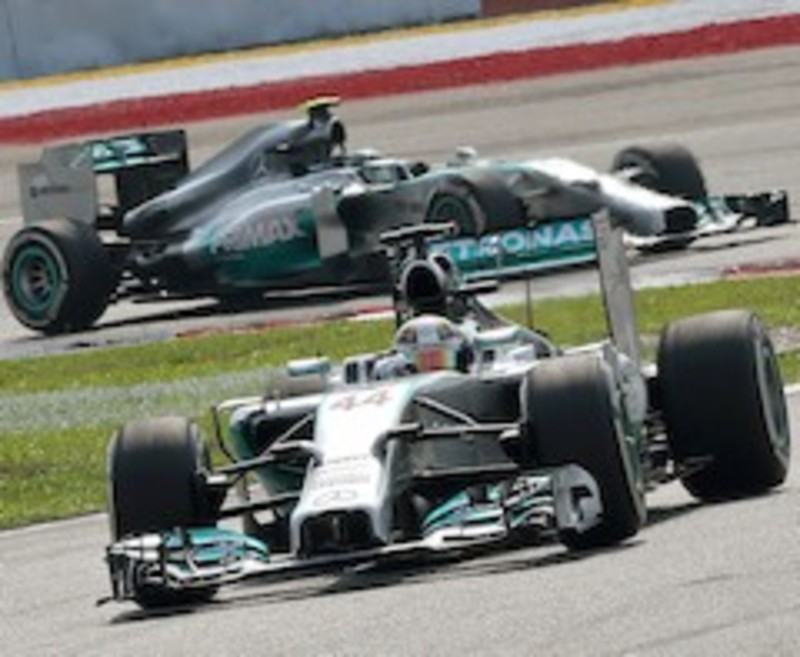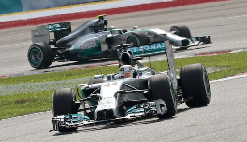 El piloto británico Lewis Hamilton (Mercedes) se ha impuesto en el Gran Premio de Malasia, segunda prueba del Mundial de Fórmula 1 que se ha disputado en el trazado de Sepang, al cruzar la línea de meta en primera posición por delante de su compañero de equipo, el alemán Nico Rosberg (Mercedes) y de Sebastian Vettel (Red Bull), mientras que el español Fernando Alonso (Ferrari) fue cuarto.