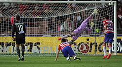 El paso de los minutos frenó el ímpetu inicial del Granada, que notó la poca participación en el juego de Fran Rico y de sus atacantes, y mejoró la propuesta cicatera de los levantinos, que trataron de batir a Roberto con sendos disparos de Ivanschitz sin mayor trascendencia.