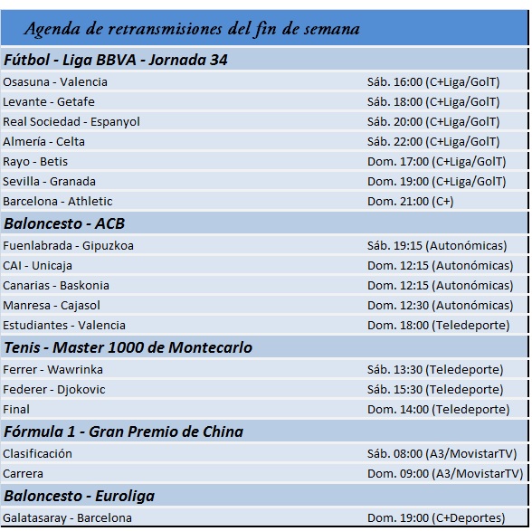 Guía de las retransmisiones deportivas del fin de semana