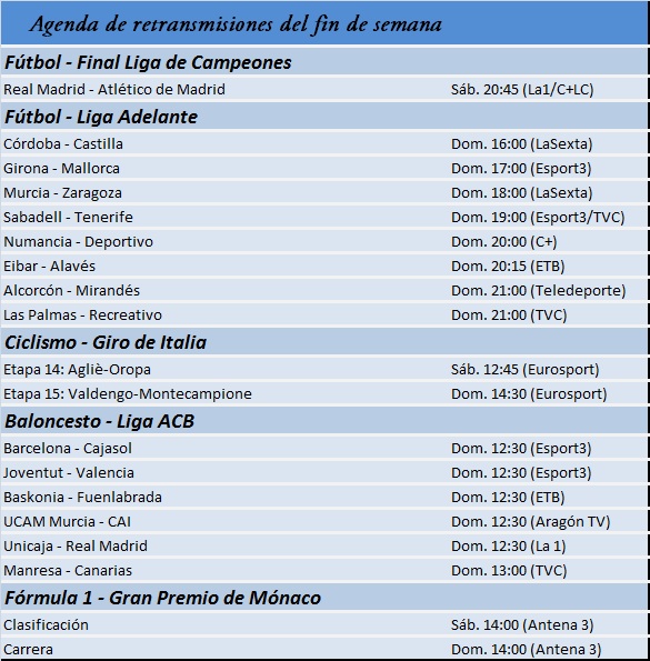 Guía de las retransmisiones deportivas del fin de semana