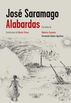 La Parca le reclamó el 18 de junio de 2010, cuando se encontraba elaborando ese libro que daría cuenta de esa antigua preocupación que señala, muy en consonancia con las inquietudes y las denuncias que Saramago ha ido desgranando a lo largo de su producción. Se trata de la novela Alabardas, alabardas, espingardas, espingardas, que, finalmente, tendría ese título -inspirado en la tragicomedia Exortaçao da Guerra, de Gil Vicente-, tras desechar otros como Belona S. A., nombre de la fábrica de armas de la que es empleado su personaje principal. Los tres capítulos de la novela que Saramago logró terminar aparecen ahora en un volumen -bellamente ilustrado por otro Premio Nobel de Literatura y también dibujante, Günter Grass-, donde se incluyen asimismo “Notas de trabajo” sobre la novela de Saramago, y sendos textos del poeta y ensayista español Fernando Gómez Aguilera, especialista en el escritor portugués, y del famoso autor de Gomorra, Roberto Saviano, no solo gran admirador de Saramago sino tan desasosegado como éste por la violencia y la corrupción que no cesan en el mundo.